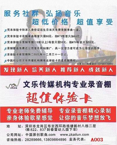我唱我歌超值体验活动开始了,只要拿本卡在生日当天,可免费到本公司专业录音棚,录制您喜爱的歌曲!